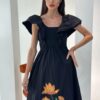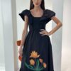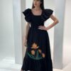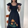 A line Dress, Cream on crepe Floral embroidery