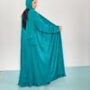 Embroi Abaya, Aqua marine crepe with big pearl botton