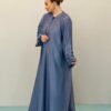 Corduroy Abaya, Stripe navy blue with navy blue piece on hand