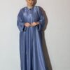 Colored Abaya, “A line style glossy blue with black crepe materials”