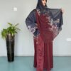 Printed Abaya, “neon yellow linen with white piece on hand & front”