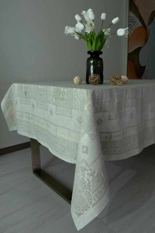 Table cloth with intricate design, Margo 250, Linen materials