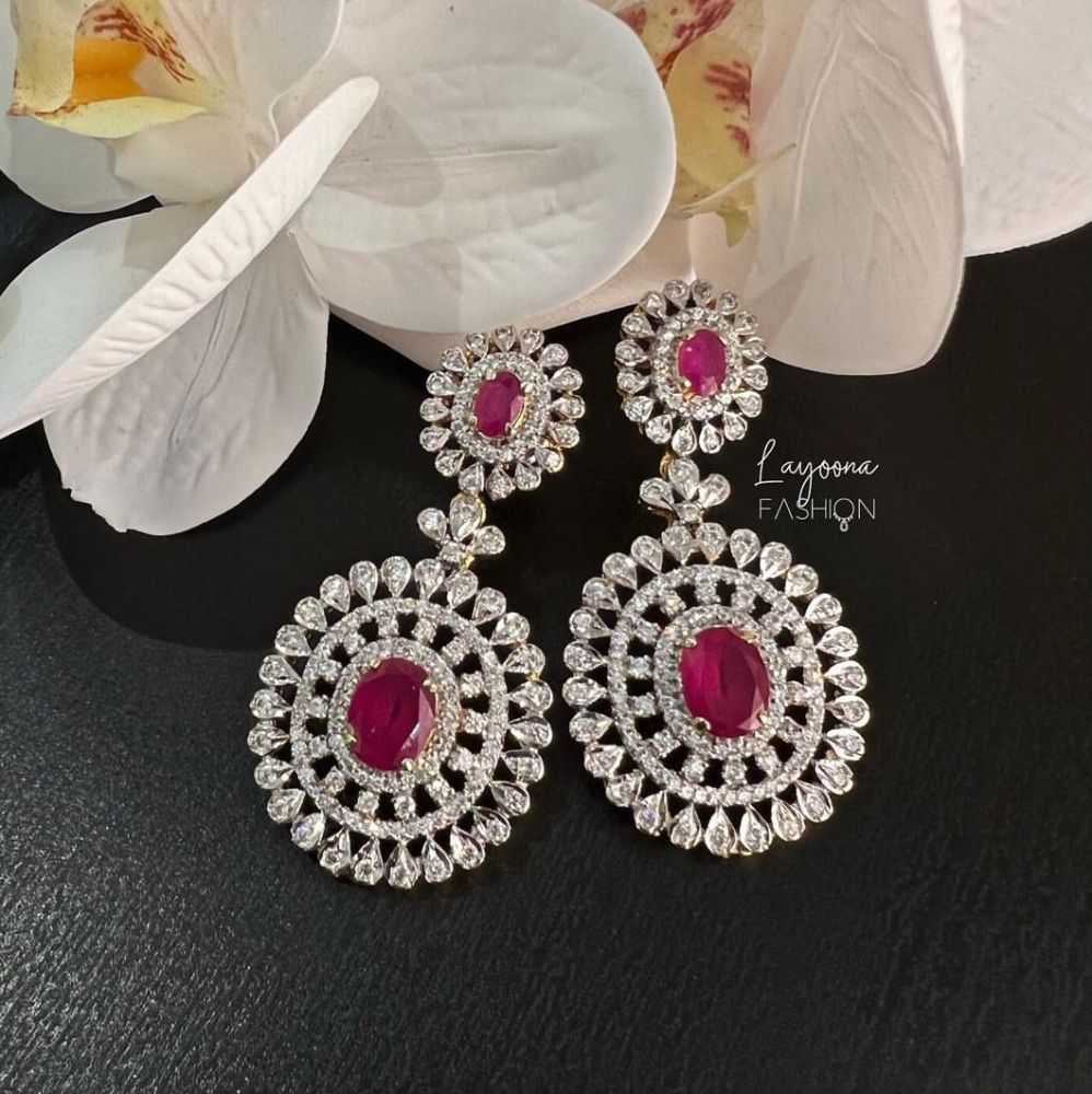 Teardrop earrings, faux ruby and crystal