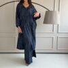 Top & Trousers w/ Zircon big buttons, Crepe Materials