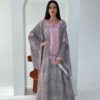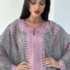 Hoodie Winter Bisht, “Hemp brown with blue violet lining beaded front & on hand”