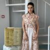 A line Dress, Cream on crepe Floral embroidery