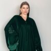 Embroi Abaya, Aqua marine crepe with big pearl botton