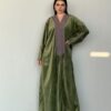 Printed Abaya, “neon yellow linen with white piece on hand & front”