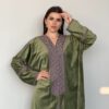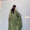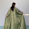 Embroi Abaya, Aqua marine crepe with big pearl botton