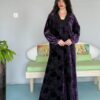 Colored Abaya, “A line style glossy blue with black crepe materials”