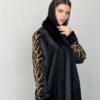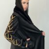 Winter coat, “Hemp chocolate brown with black leather design w/ fur”