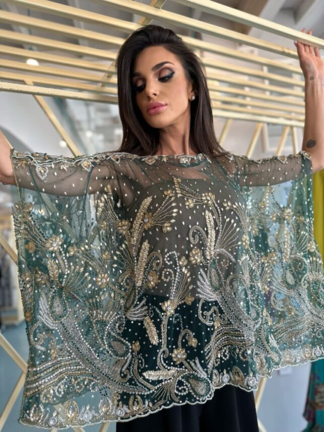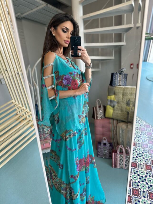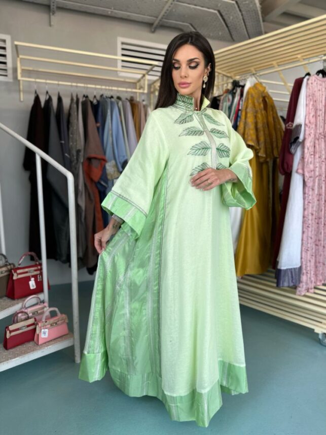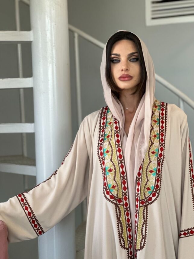 2pc Modern Jalabiya full embroidery, Nylon & crepe materials